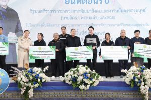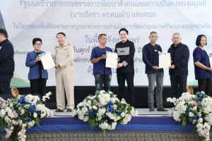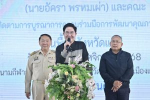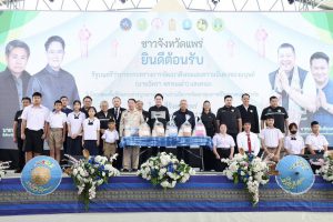 พิมพ์ไทยออนไลน์// เมื่อวันที่ 28 พฤศจิกายน 2568 นายอัครา พรหมเผ่า รัฐมนตรีว่าการกระทรวงการพัฒนาสังคมและความมั่นคงของมนุษย์ (รมว.พม.) ลงพื้นที่จังหวัดแพร่ เพื่อตรวจติดตามการบูรณาการความร่วมมือการพัฒนาคุณภาพชีวิตของคนทุกช่วงวัย พร้อมมอบนโยบายการขับเคลื่อนการบูรณาการพัฒนาคุณภาพชีวิตของคนทุกช่วงวัย จากนั้นมอบถุงยังชีพ “ถุงฮีล(Heal)ใจ พม.ใกล้คุณ” เครื่องอุปโภคบริโภคที่จำเป็นให้กลุ่มเปราะบางจำนวน 400 ราย เพื่อบรรเทาความเดือดร้อน พร้อมทั้งมอบงบประมาณสนับสนุนขบวนองค์กรชุมชนจังหวัดแพร่ ปีงบประมาณ 2569 จำนวน 6 โครงการ เป็นเงิน 4,799,674 บาท โดยมี นายกันตพงศ์ รังษีสว่าง ปลัดกระทรวงการพัฒนาสังคมและความมั่นคงของมนุษย์ (ปลัด พม.) คณะผู้บริหารกระทรวงการพัฒนาสังคมและความมั่นคงของมนุษย์ (พม.) , กระทรวงเกษตรและสหกรณ์ (กษ.) , กระทรวงศึกษาธิการ (ศธ.) และกระทรวงการท่องเที่ยวและกีฬา (กก.) และผู้แทนหน่วยงานที่เกี่ยวข้อง เข้าร่วม ณ โดมสนามกีฬาองค์การบริหารส่วนจังหวัดแพร่ ตำบลในเวียง อำเภอเมือง จังหวัดแพร่