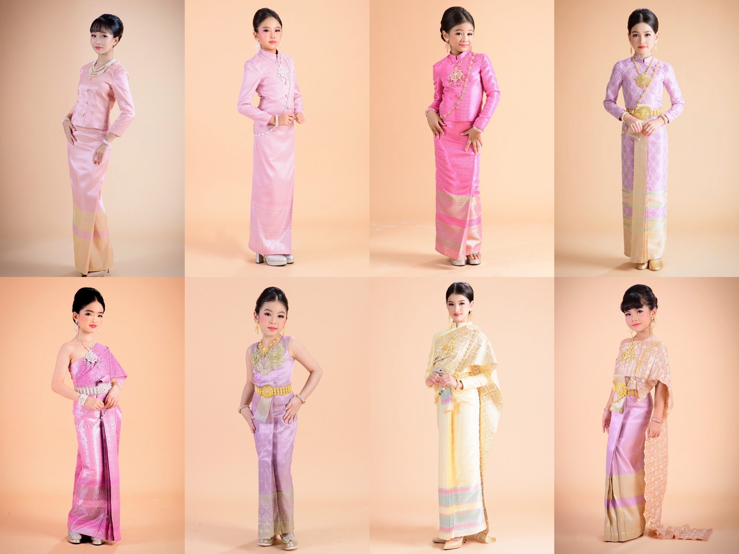 โดยนางแบบเด็กผู้สวมใส่ชุดไทยทั้ง 8 แบบ คือ