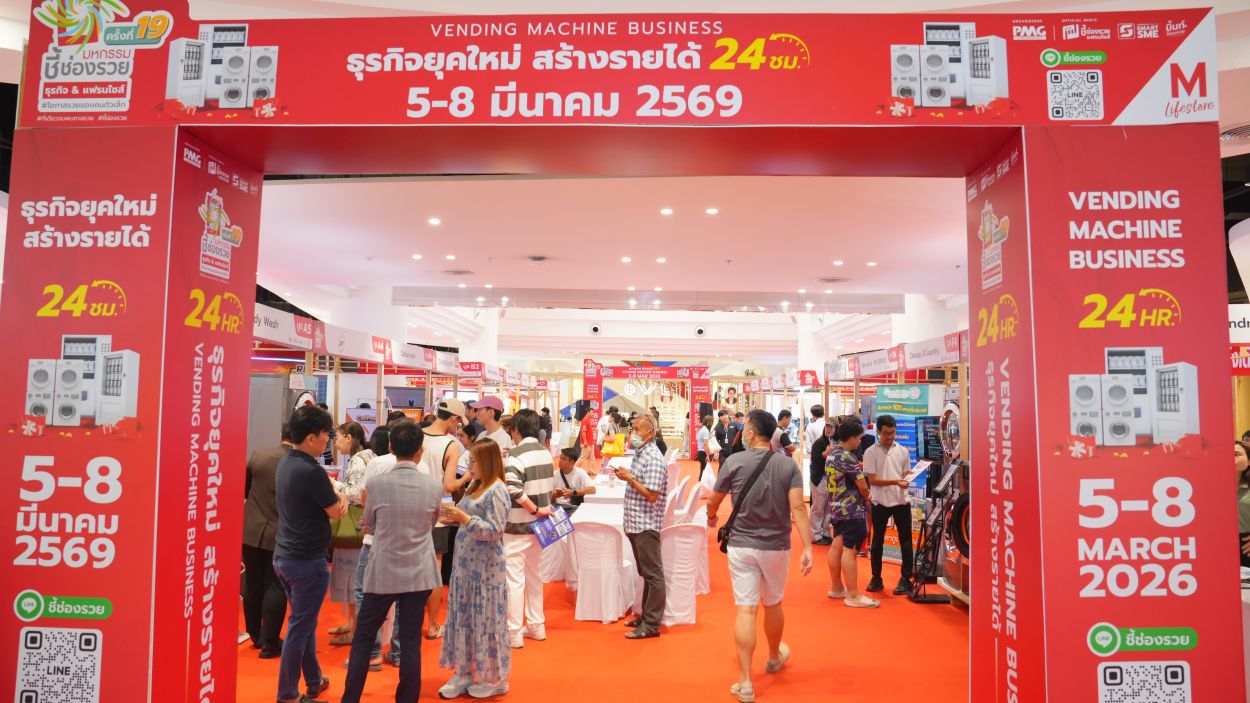 พิมพ์ไทยออนไลน์//ประสบความสำเร็จอย่างงดงาม สำหรับงาน “มหกรรมชี้ช่องรวย Vending Machine Business” ที่จัดขึ้นระหว่างวันที่ 5–8 มีนาคม 2569 ณ M FASHION HALL 1 ชั้น G เดอะมอลล์ไลฟ์สโตร์ บางกะปิ ที่ผ่านมา โดยภายในงานได้รวบรวมธุรกิจมาแรงในกลุ่ม ธุรกิจสะดวกซัก ตู้จำหน่ายสินค้าอัตโนมัติ ธุรกิจหยอดเหรียญ และธุรกิจบริการยุคใหม่ พร้อมจัดโปรโมชั่นพิเศษรับต้นปี เปิดโอกาสให้ผู้ที่สนใจลงทุนและมองหาอาชีพได้เข้ามา เจรจาซื้อขายธุรกิจกับเจ้าของแบรนด์โดยตรง